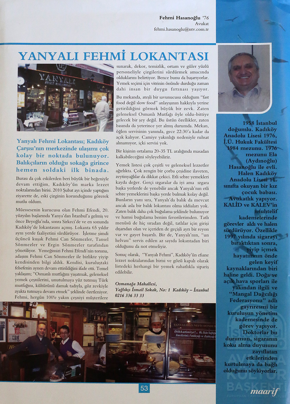 Maarif Dergisi - YANYALI FEHMİ LOKANTASI