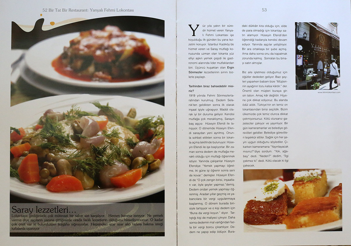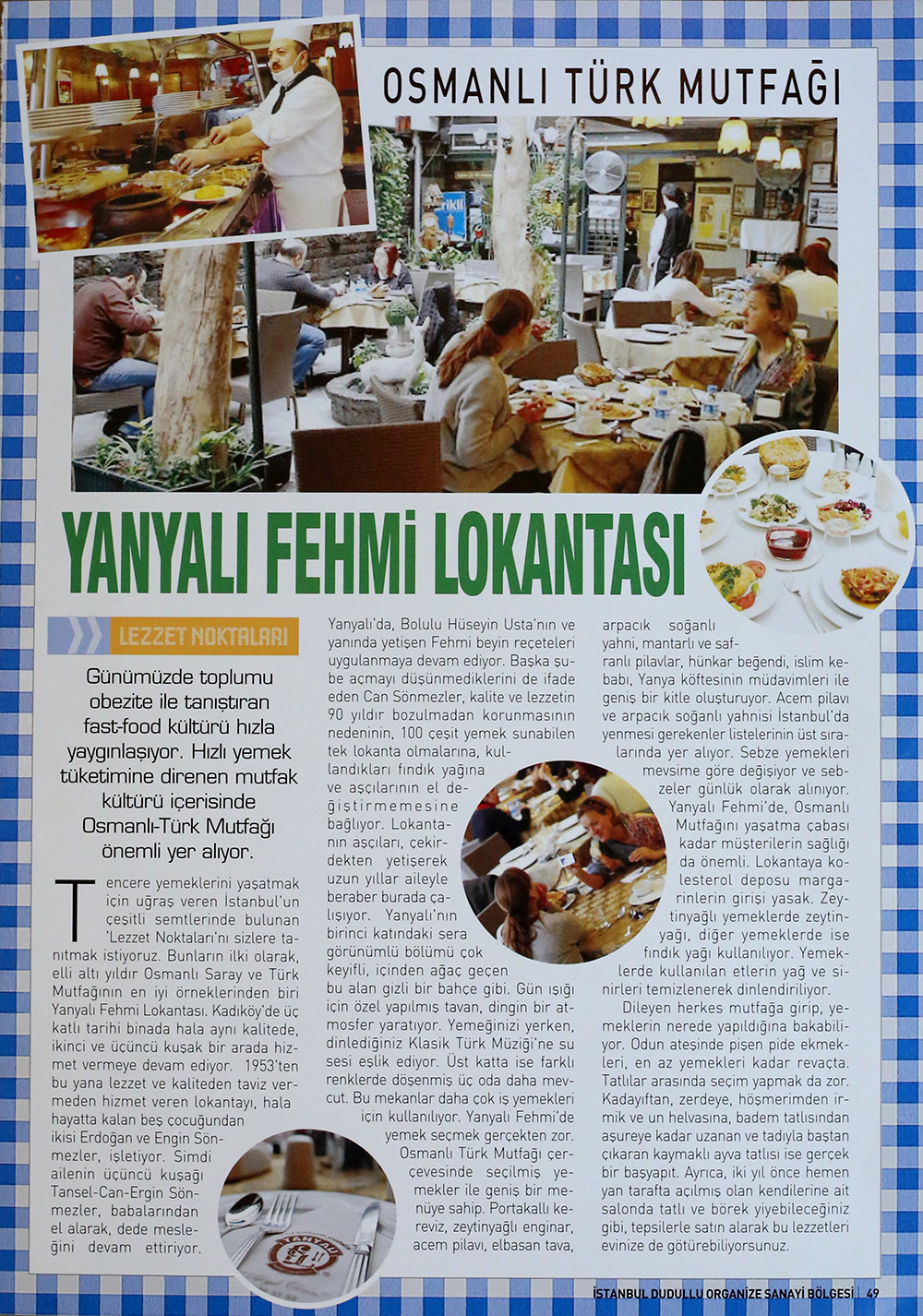 Yüz yıla yakın bir süredir hizmet veren Yanyalı Fehmi Lokantası işe koyulduğu ilk günden bu yana lezzetini koruyor. İstanbul Kadıköy'de hizmet veren ve Saray mutfağı konusunda uzman olan lokanta yüz elliyi aşkın yemek çeşidi ile gastronomi alanında lider mutfaklardan biri. Üçüncü kuşaktan olan Ergin Sönmezler lezzetlerinin sırrını bizlerle paylaştı.