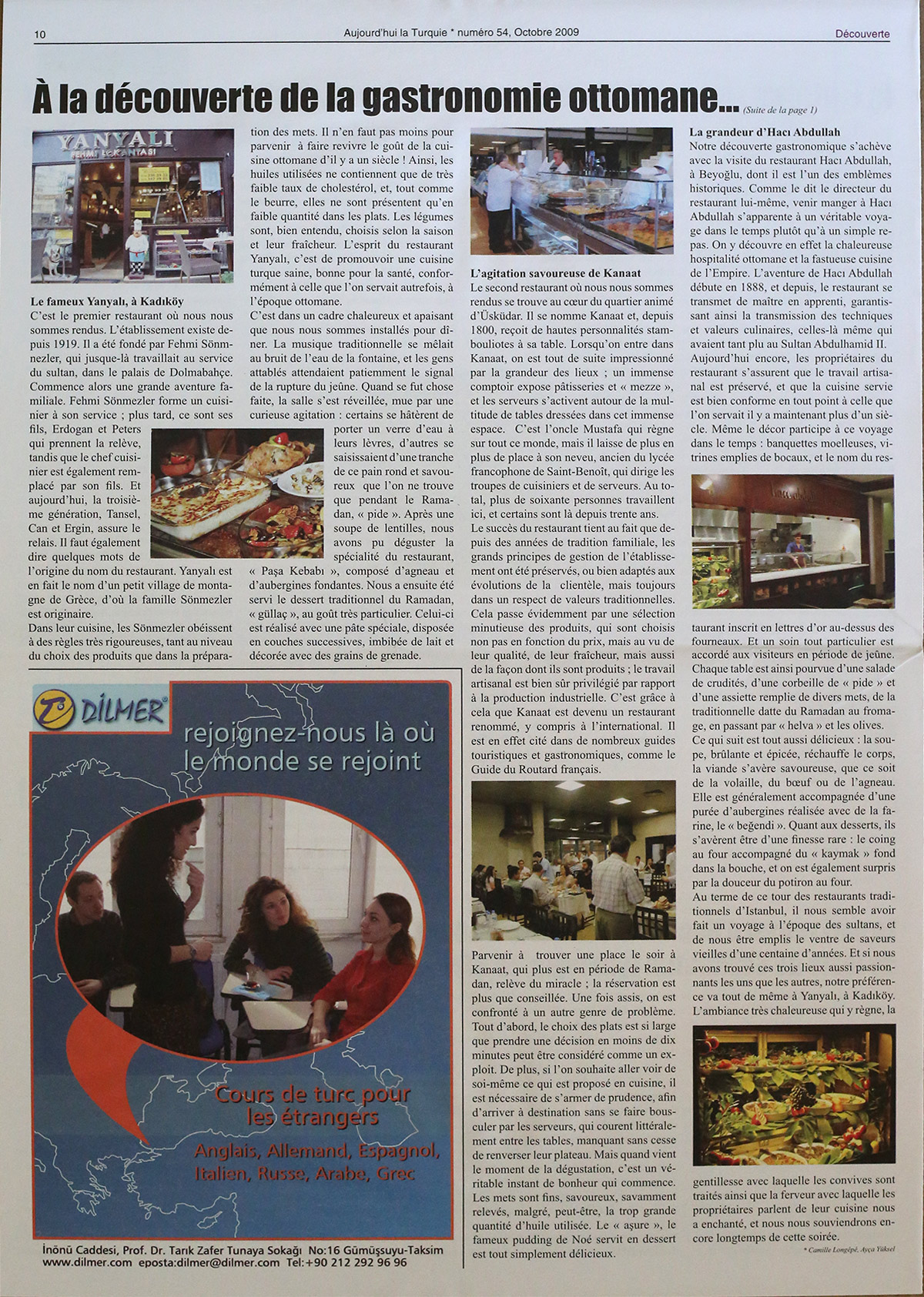 Can et Ergin, assure le relais. Il faut également dire quelques mots de l’origine du nom du restaurant. Yanyali est en fait le nom d’un petit village de montagne de Grèce, d’où la famille Sönmezler est originaire.