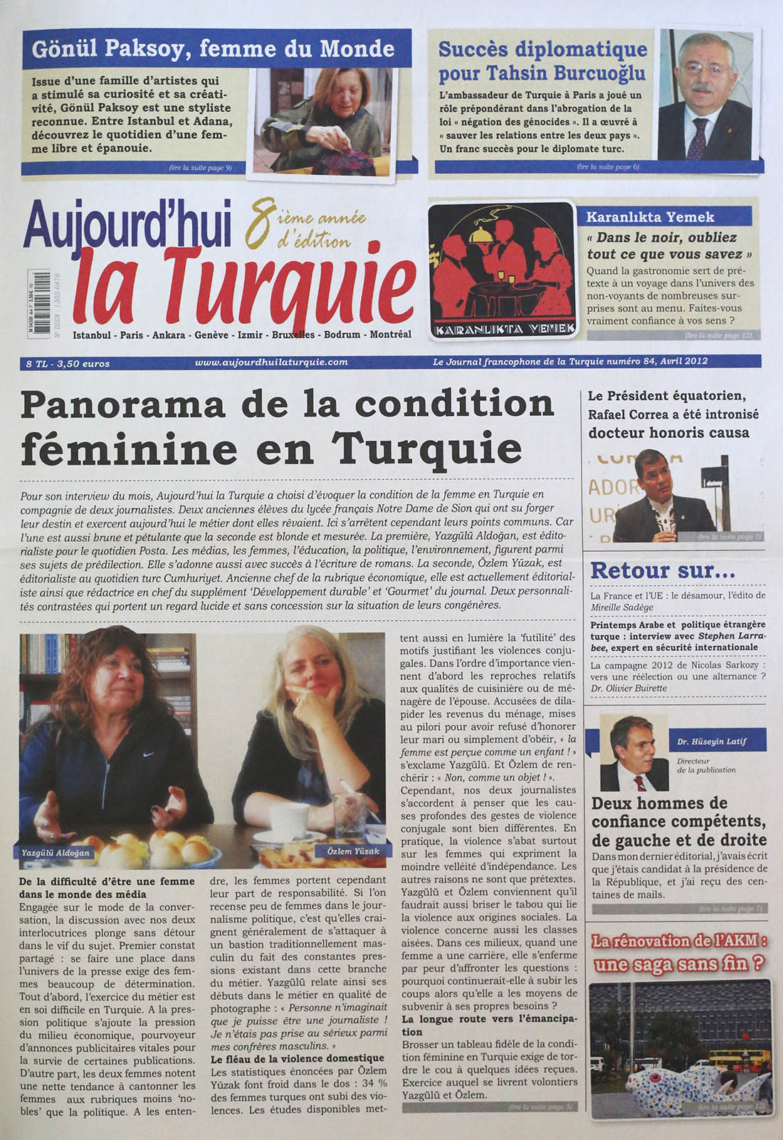 Pour son interview du mois, Aujourd'hui la Turquie a choisi d'évoquer la condition de la femme en Turquie en compagnie de deux journalistes. Deux anciennes élèves du lycée français Notre Dame de Sion qui ont su forger leur destin et exercent aujourd'hui le métier dont elles rêvaient. Ici s'arrêtent cependant leurs points communs.