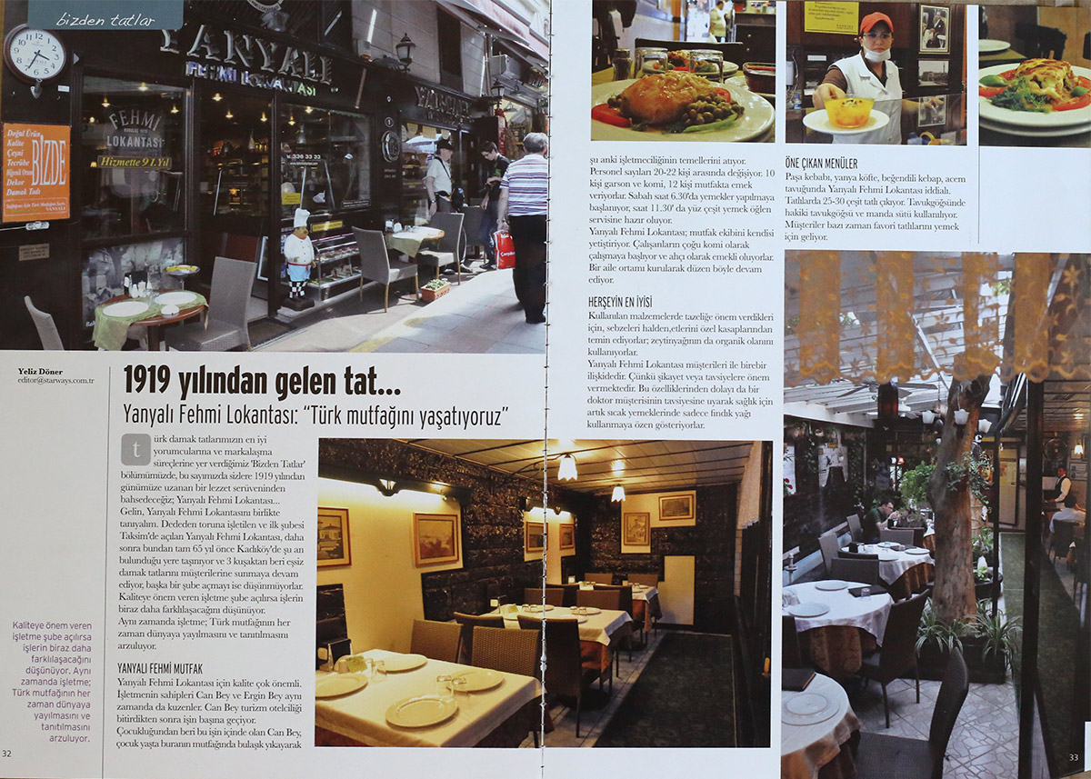 Türk damak tatlarızın en iyi yorumcularına ve markalaşma süreçlerine yer verdiğimiz 'Bizden Tatlar' bölümümüzde, bu sayımızda sîzlere 1919 yılından günümüze uzanan bir lezzet serüveninden bahsedeceğiz; Yanyalı Fehmi Lokantası...
