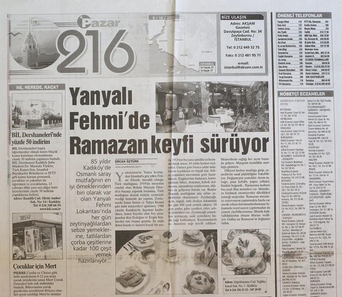 Tencere yemeklerini yaşatmak için uğraş veren İstanbul'un çeşitli semtlerinde bulunan ‘Lezzet Noktalarını sîzlere tanıtmak istiyoruz. Bunların ilki olarak, elli altı yıldır Osmanlı Saray ve Türk Mutfağının en iyi örneklerinden biri Yanyalı Fehmi Lokantası. Kadıköy'de üç katlı tarihi binada hala aynı kalitede, ikinci ve üçüncü kuşak bir arada hizmet vermeye devam ediyor.